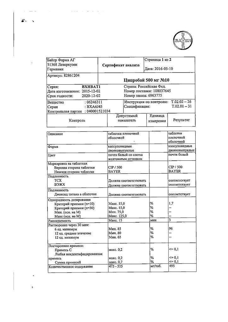 Применение. Дозировка Ципробая зависит от показаний. Обычно вводят от 250 до 750 мг перорально два раза в день. Продолжительность зависит от тяжести и типа инфекции, но в среднем составляет от 7 до 14 дней. Таблетки нельзя разжевывать – их необходимо проглатывать целиком.