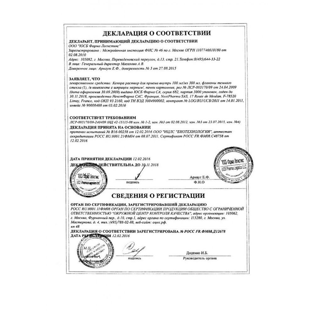 - парциальных приступов со вторичной генерализацией или без таковой у взрослых и детей в возрасте старше 1 мес, больных эпилепсией (Кеппра р-р пероральный);