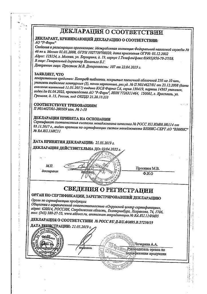 Абсолютная пероральная биодоступность близка к 100%. Сmax в плазме крови достигается через 1,3 ч после приема препарата. Равновесное состояние достигается через 2 дня применения препарата 2 раза в сутки. Сmax обычно составляют 31 и 43 мкг/мл после разовой дозы 1000 мг и повторной дозы 1000 мг 2 раза в сутки соответственно. Степень всасывания не зависит от дозы и не изменяется под влиянием пищи.