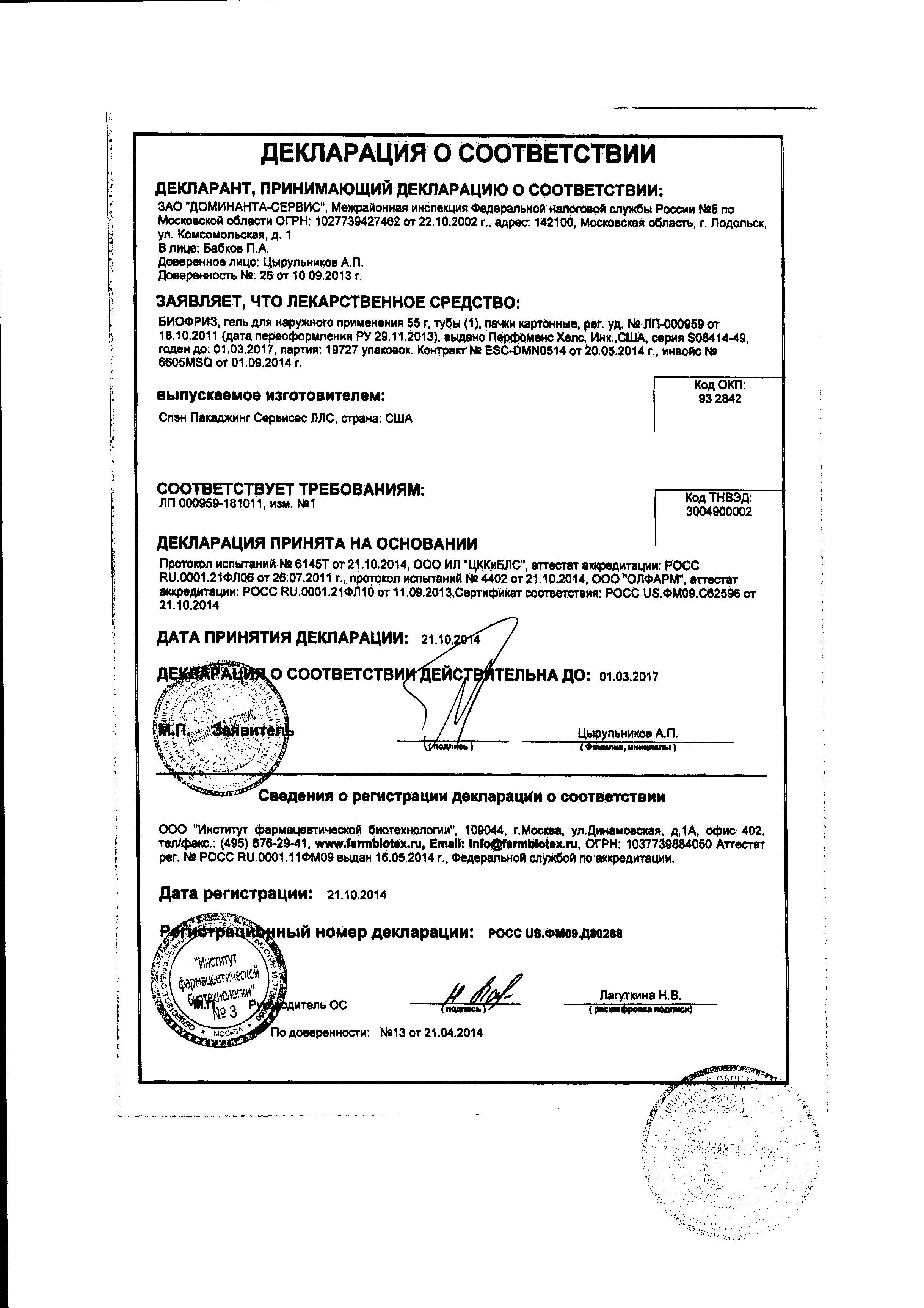 Показания препарата Биофриз