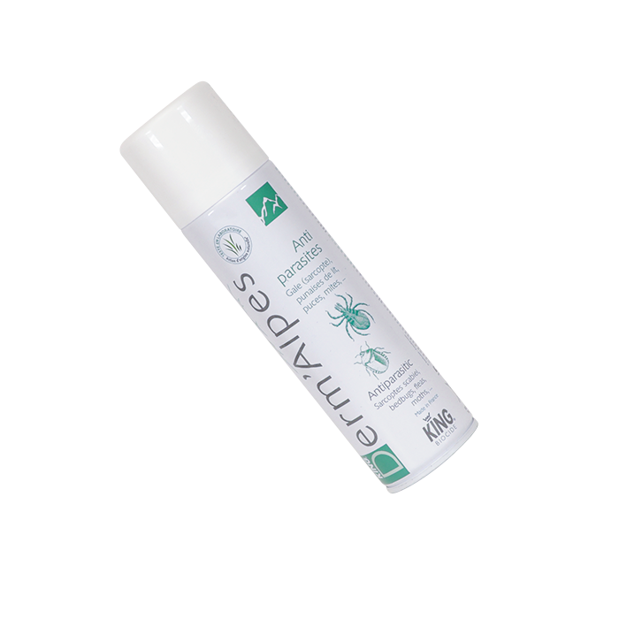 Препарат King DermAlpes активен в отношении паразитов (саркопт чесотки, постельных клопов, блох, клещей) на всех этапах их развития (личинки, нимфы или взрослые). Аэрозоль является дополнением к лечению чесотки и позволяет избежать повторного заражения через одежду и постельные принадлежности.