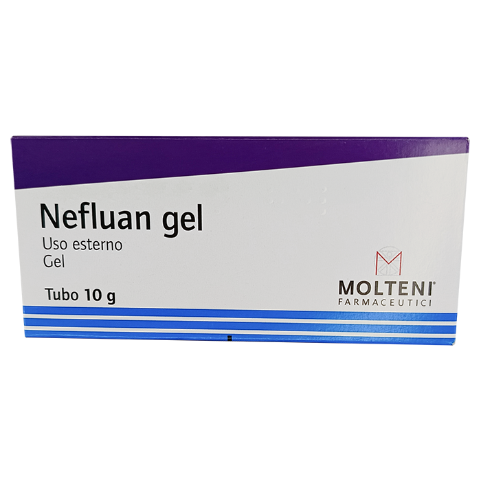 Обезболивание происходит при воздействии лидокаина хлорида. Антибиотик из группы аминогликозидов – неомицина сульфат, оказывает антибактериальное действие. Нефлуан эффективно противостоит актиномицетам, грамположительным и грамотрицательным микроорганизмам. Синтетический глюкокортикостероид – флуоцинолона ацетонид, снимает воспаление в месте нанесения геля и усиливает влияние лидокаина.
