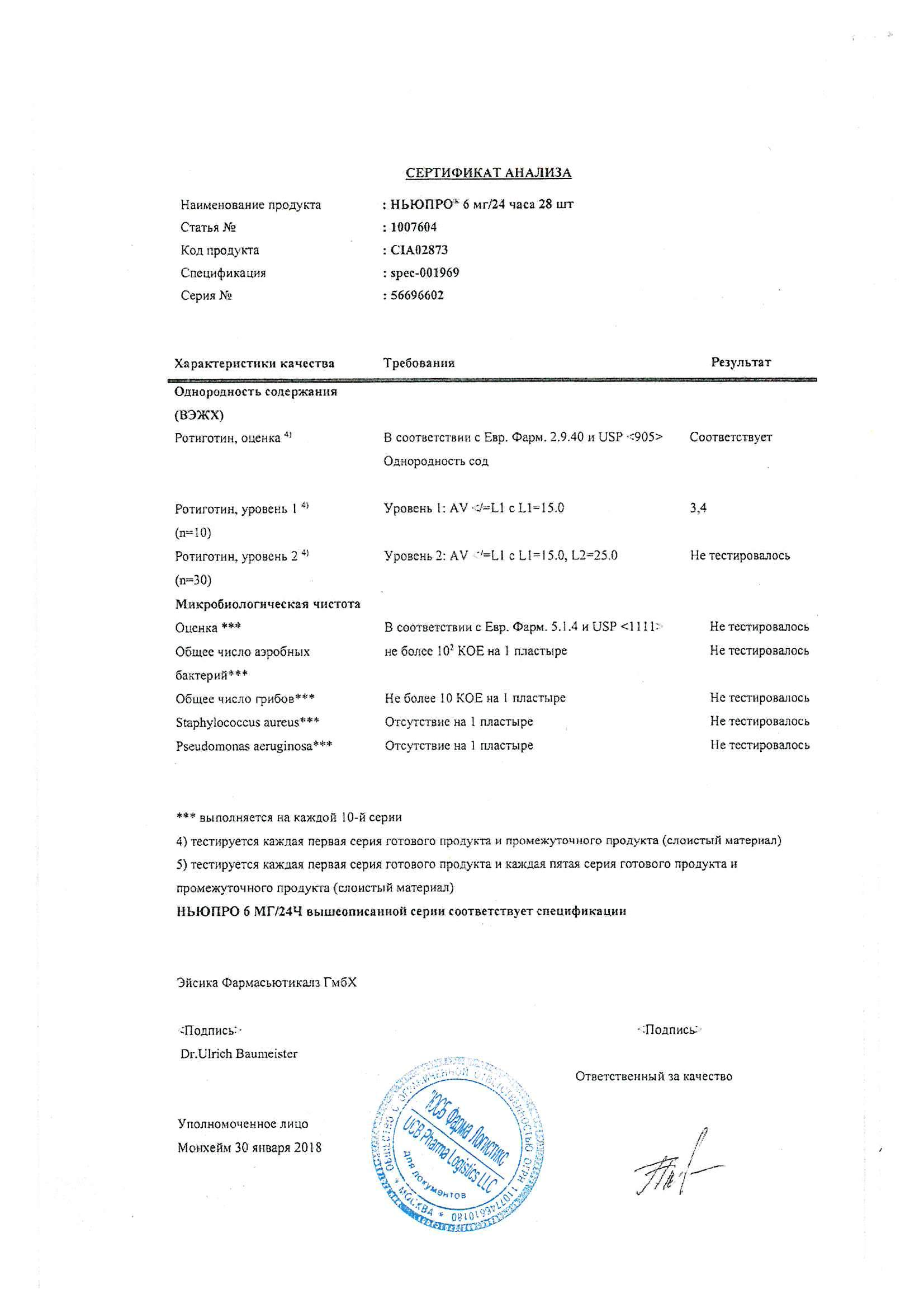 Противопоказания. Согласно инструкции Ньюпро пластырь не рекомендуется использовать лицам до 18 лет, а также беременным женщинам и пациентам, имеющим индивидуальную непереносимость ротиготина.