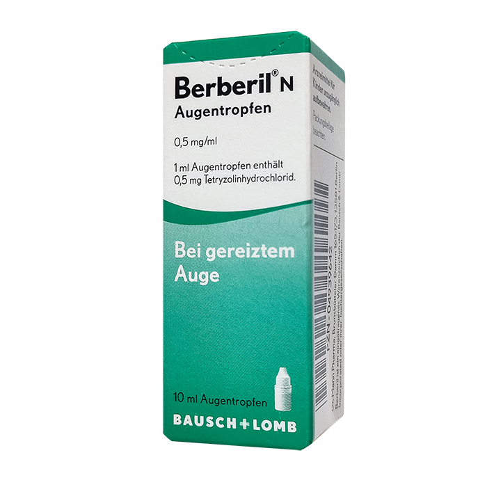 Вещество оказывает сильное противоотечное действие. Берберил Н подходит для быстрого облегчения симптомов конъюнктивита, вызванного аллергическими реакциями или неспецифическими триггерами, такими как пыль, дым, ветер или хлорированная вода. Покраснение и припухлость конъюнктивы быстро проходят, глаза перестают слезиться.