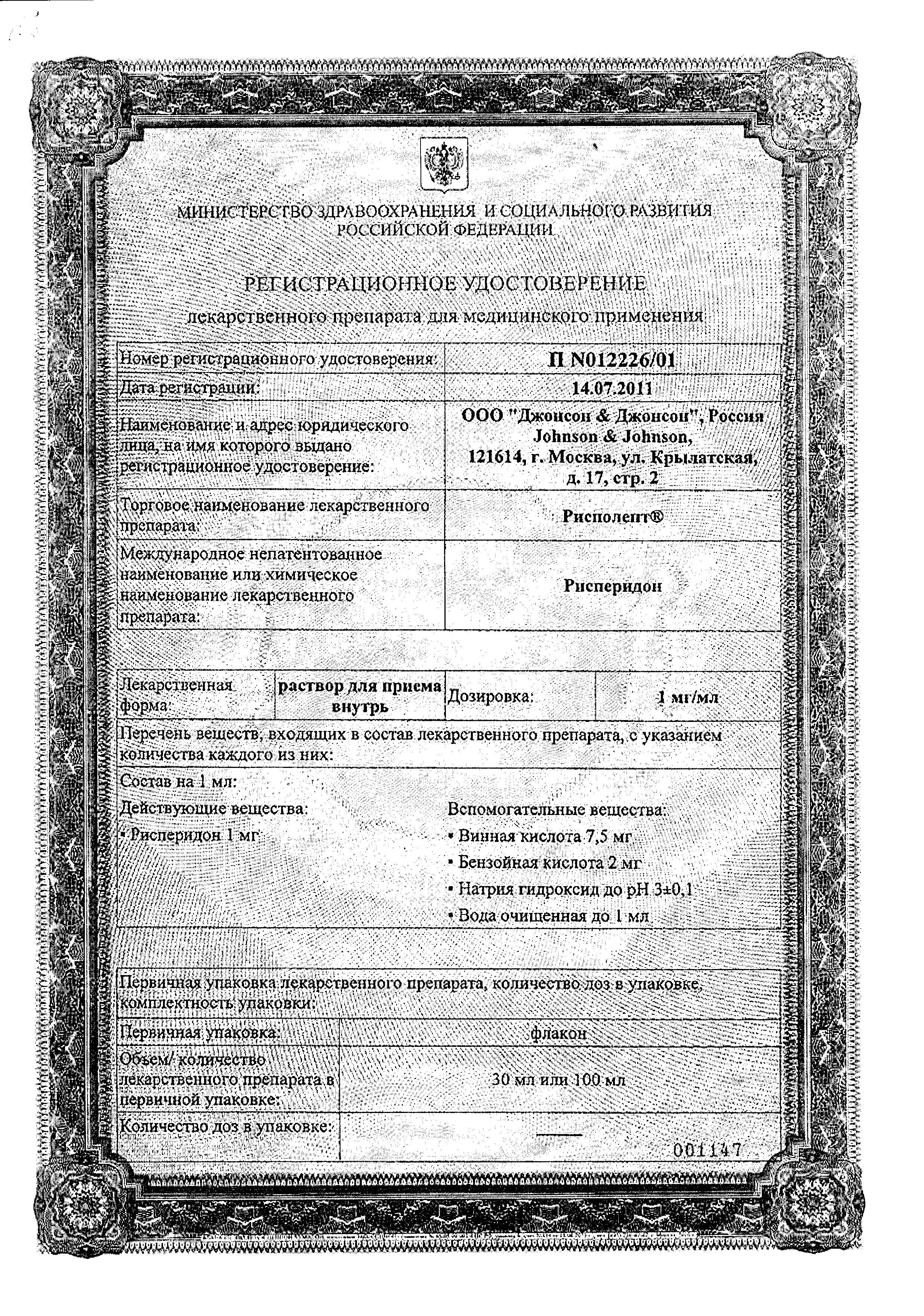 Форма выпуска, упаковка и состав препарата Рисполепт®