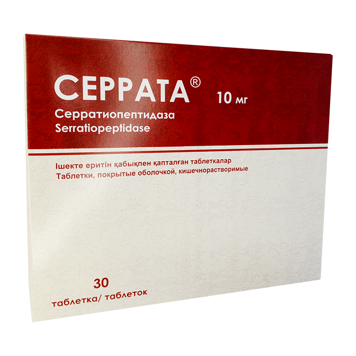 Препарат Серрата может применяться во множестве областей медицины: в хирургии и пластической хирургии, дерматологии, акушерстве, отоларингологии. Действующее вещество – серратиопептидаза. Таблетки покрыты кишечнорастворимой оболочкой.