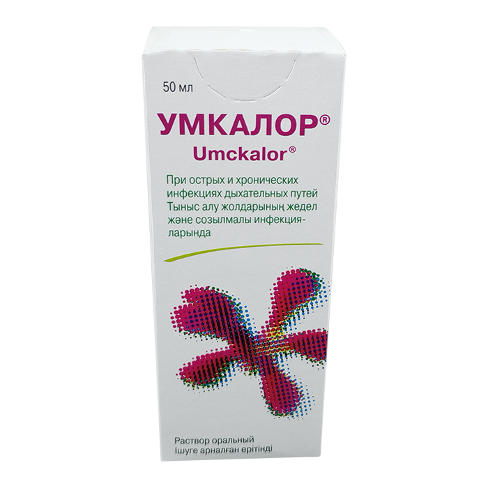 Умкалор рекомендуется к применению в качестве вспомогательного средства при лечении острых респираторных инфекций, таких как острый бронхит, ангина, насморк, и для симптоматического облегчения состояний, связанных с затрудненным отхождением мокроты.