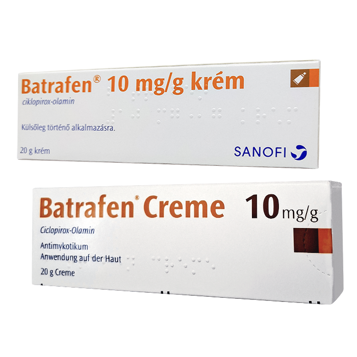 Крем Батрафен содержит активное вещество циклопирокс оламин и является лекарством, используемым для лечения грибковых заболеваний кожи (противогрибковое средство широкого спектра действия). Действующее вещество оказывает фунгицидное действие на большинство грибов, вызывающих заболевания кожи и слизистых оболочек.