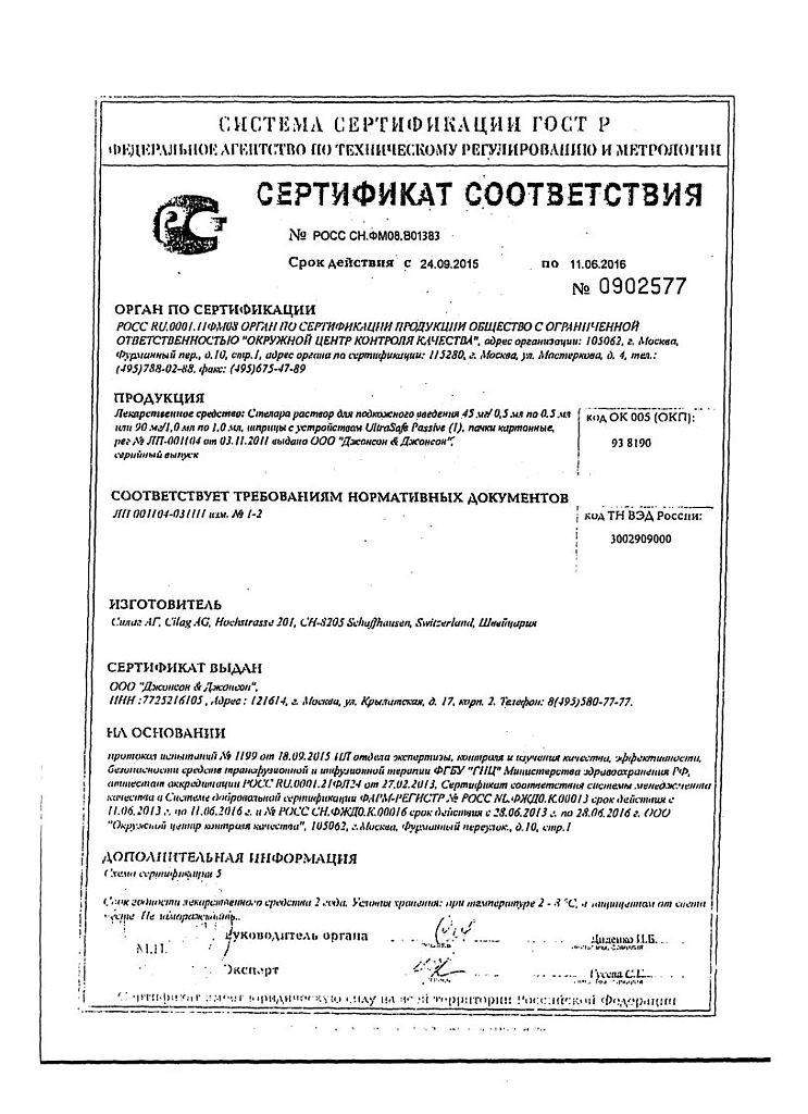 Перед введением препарата внимательно осмотрите содержимое шприца. Раствор может быть прозрачным или слегка опалесцирующим от бесцветного до светло-желтого цвета, может содержать единичные прозрачные частицы белка. Такой внешний вид является нормальным для белковых растворов. При изменении цвета, помутнении или наличии твердых частиц раствор использовать нельзя. Устекинумаб не содержит консервантов, поэтому любой неиспользованный остаток препарата в шприце использовать нельзя.Препарат не следует смешивать с другими жидкостями для инъекции. Если для введения дозы 90 мг используют 2 шприца по 45 мг препарата, следует сделать 2 последовательные инъекции. При этом вторая инъекция должна быть сделана сразу же после первой. Инъекции следует делать в разные области. Не встряхивайте препарат. Длительное энергичное встряхивание может повредить препарат. Не используйте препарат, если его встряхивали. В начале лечения инъекции препарата Стелара® должен делать только медицинский персонал, однако, в последующем, если врач сочтет это возможным, пациент может делать себе инъекции препарата Стелара самостоятельно, соблюдая все необходимые предосторожности и пройдя предварительно обязательное обучение технике подкожных инъекций, с последующим контролем врача. У детей в возрасте от 12 до 18 лет все инъекции должны проводиться медицинским персоналом.